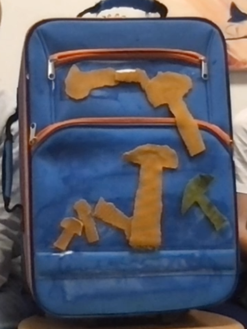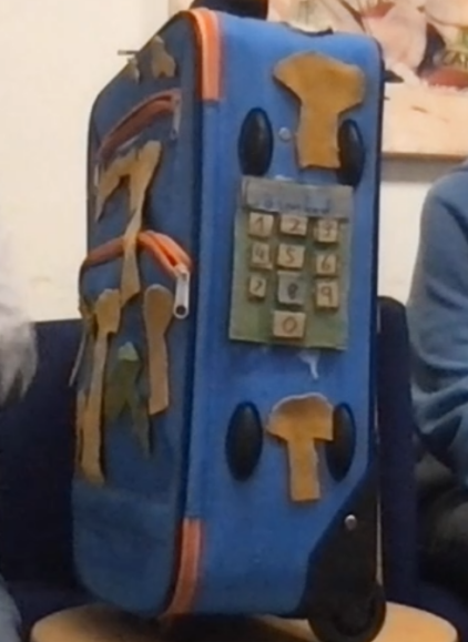 Vi har återanvänt en gammal resväska som skulle ha kastats eftersom handtaget var trasigt. Nu behövs inget handtag – Doggie styrs ju ändå med kontrollen!